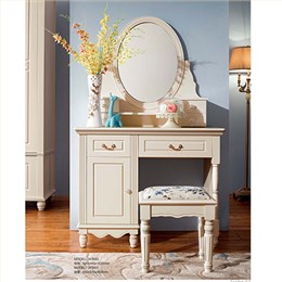 欧式 卧房家具 蓝色印象 妆台W3002/ 妆凳W3001 板木结合 茉莉花白