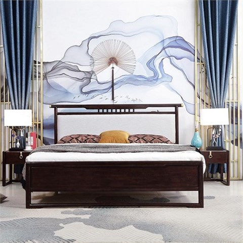 现代大作极简床头柜T-G13白橡实木脚+直纹白橡木皮拼花修黑橡色烟熏色