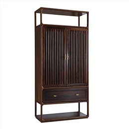 新中式 卧室家具交换空间-意鸣·韵 衣柜 CZ56002 2390*600*2200 白蜡木+板材 紫檀色+小山纹榆木本色