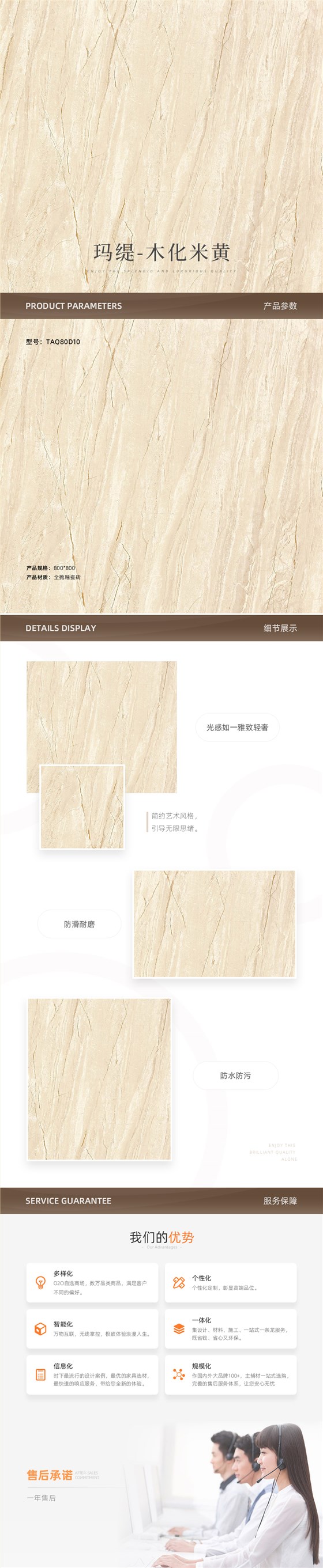 宏宇瓷砖 经典大理石瓷砖 HPEG80026 800×800mm 黄色