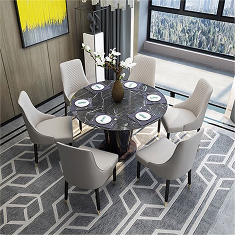 轻奢 餐厅家具 卓越 餐桌 B8223大理石 枪黑色+天然大理石威利丝金+爵士白