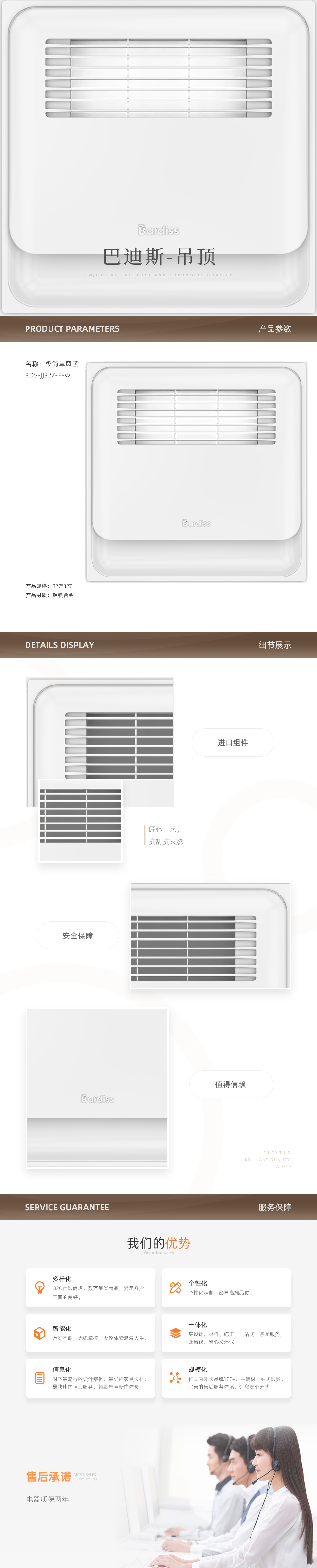 巴迪斯 集成吊顶 极简单风暖 BDS-JJ327-F-W 327*327 铝镁合金