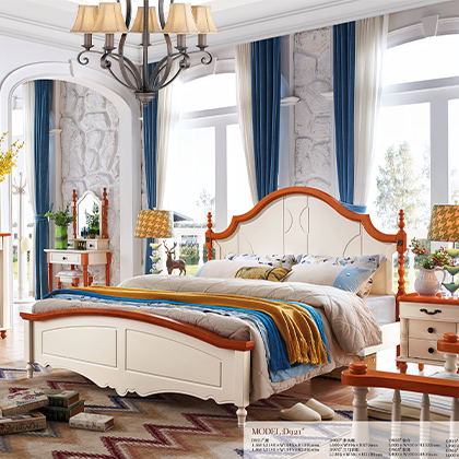 地中海风格 卧房家具 玉瑾之恋 1.5米床/1.8米床 D921 橡木+中纤板 象牙白+板栗色