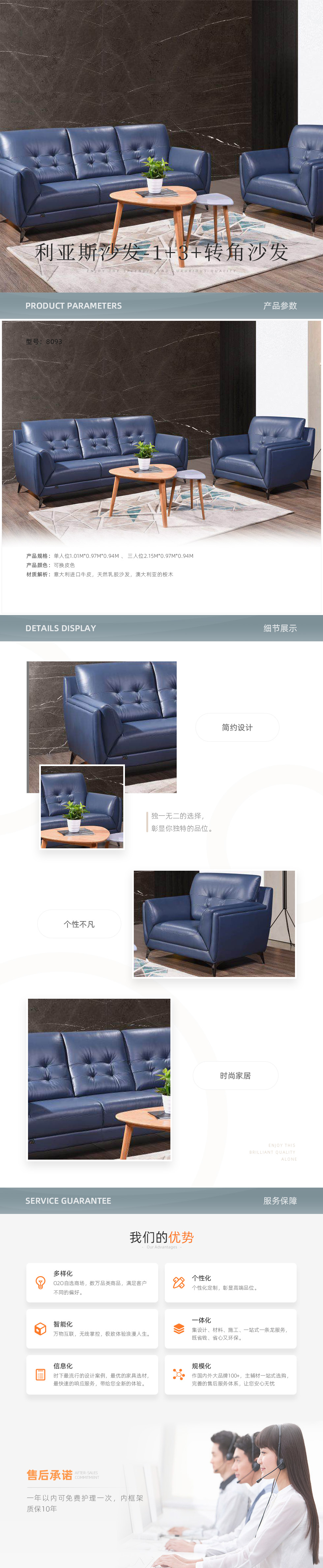 客厅家具 现代家具 利亚斯沙发 1+3+转 8093 牛皮 可换皮色