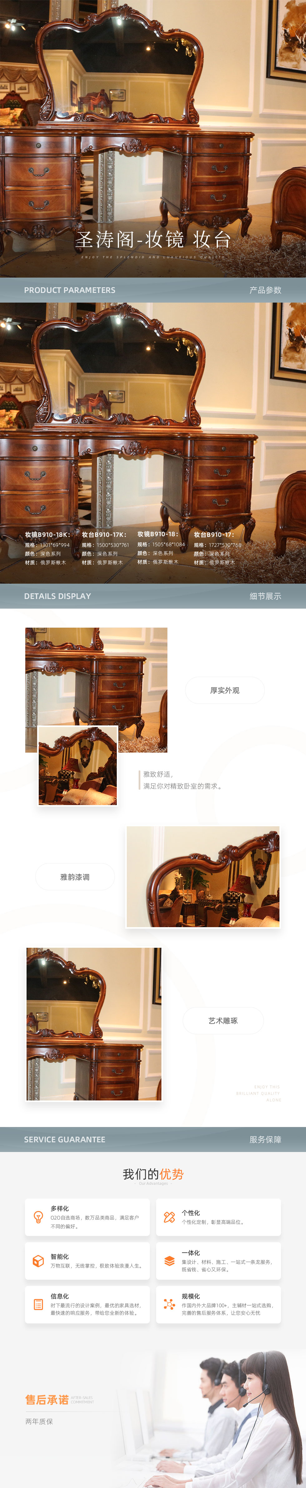 美式 卧室家具 圣涛阁妆镜B910-18K/17K妆台B910-18/17俄罗斯楸木深色系列