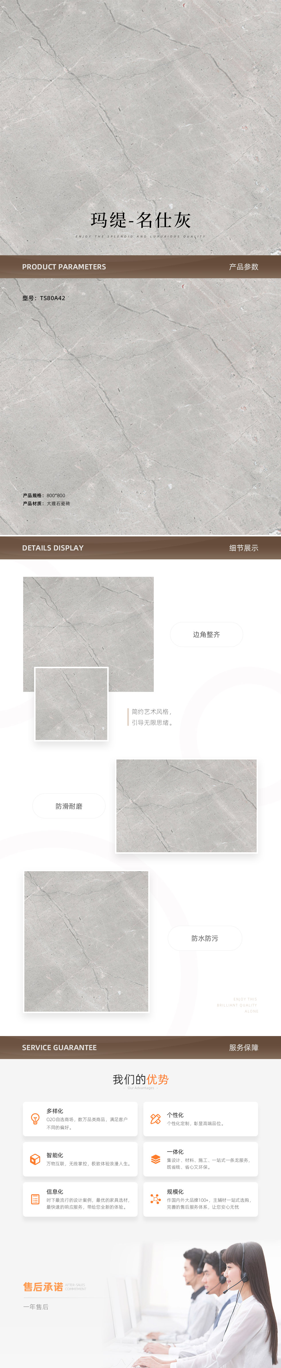 玛缇 瓷砖 名仕灰 TS80A42 800*800 大理石瓷砖