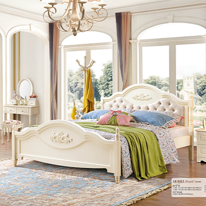 欧式 卧房家具 蓝色印象 1.8米床 W3919 板木结合 茉莉花白
