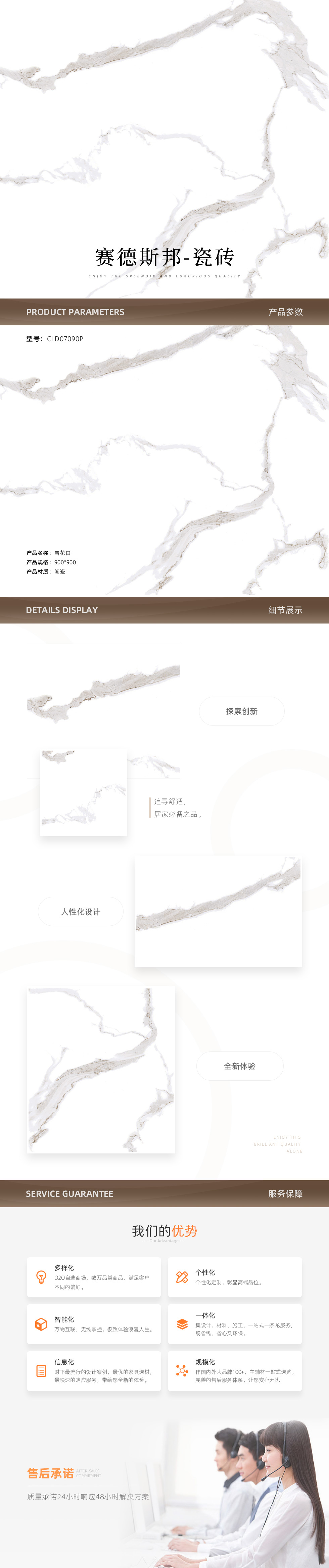 赛德斯邦 瓷砖 雪花白 CLD07090P 900*900 陶瓷