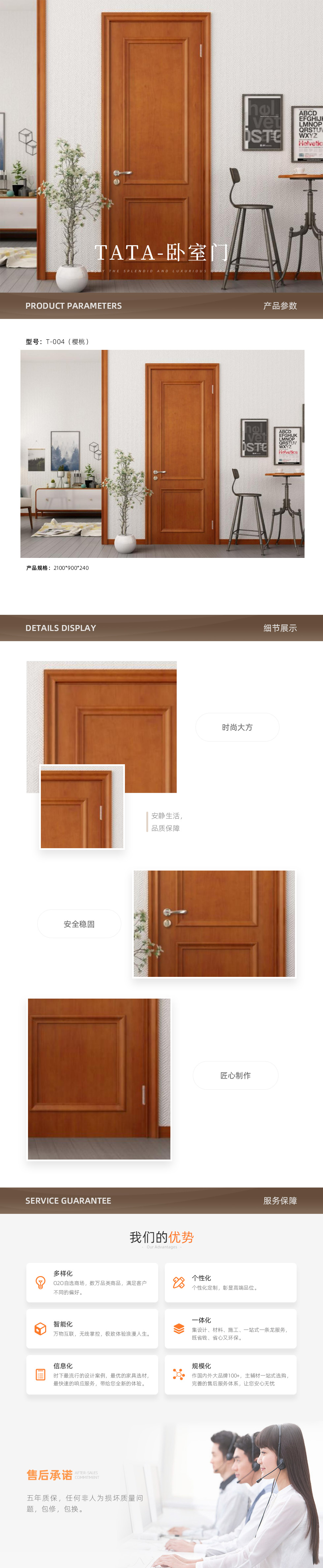 TATA 卧室门 T-004(樱桃) 2100*900*240 门扇为LVL松木(多层板)