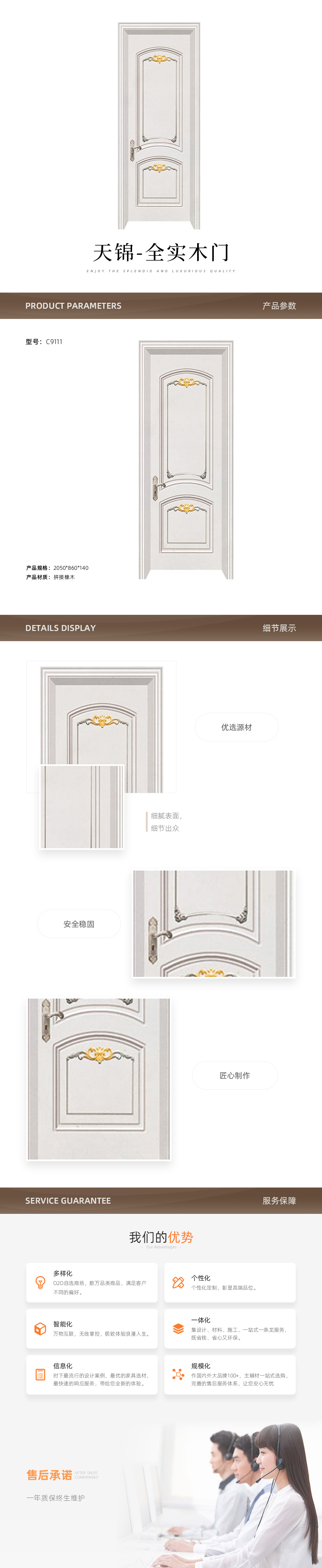 天锦 全实木门 C9111 2050*860*140 拼接橡木