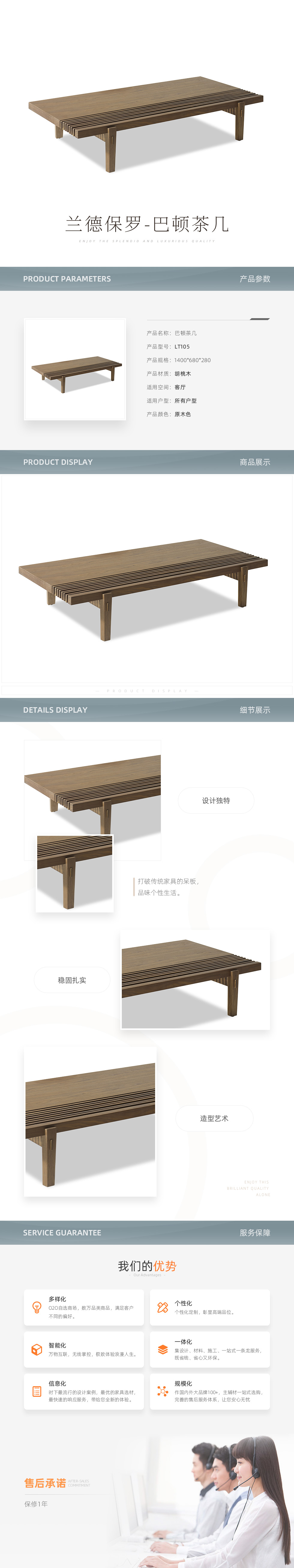 现代极简 客厅家具 兰德保罗 巴顿茶几 LT105 1400*680*280 胡桃木 原木色