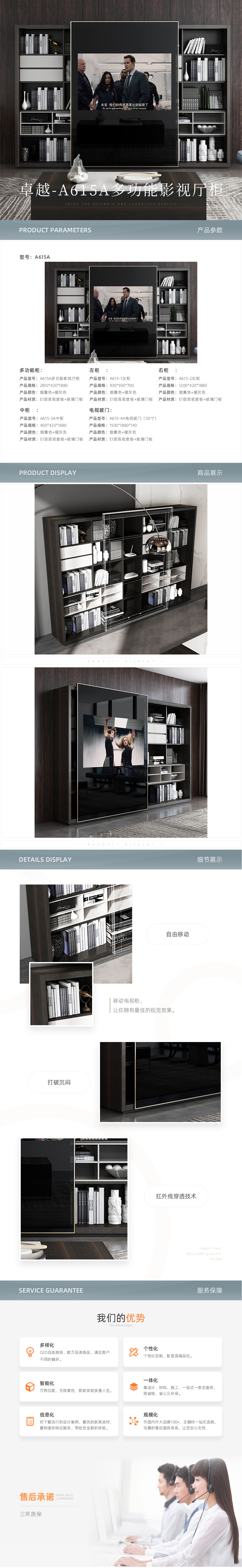 现代 客厅家具 卓越 A615A 多功能影视厅柜 E1级高密度板 +玻璃门板 烟熏色+暧灰色