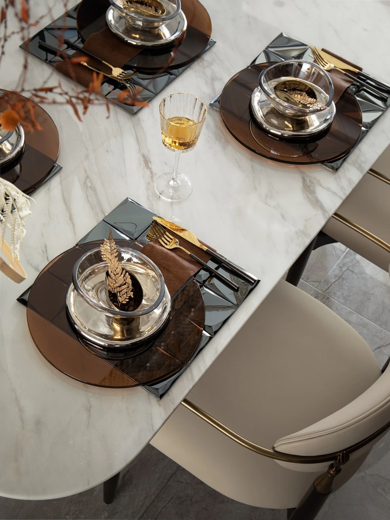 高级又复古的低饱和度金棕色带着多元的融合气质,成为吸睛的亮点,温暖而醒目的色泽增加了空间的奢华感和温润感,带来精致的生活格调。