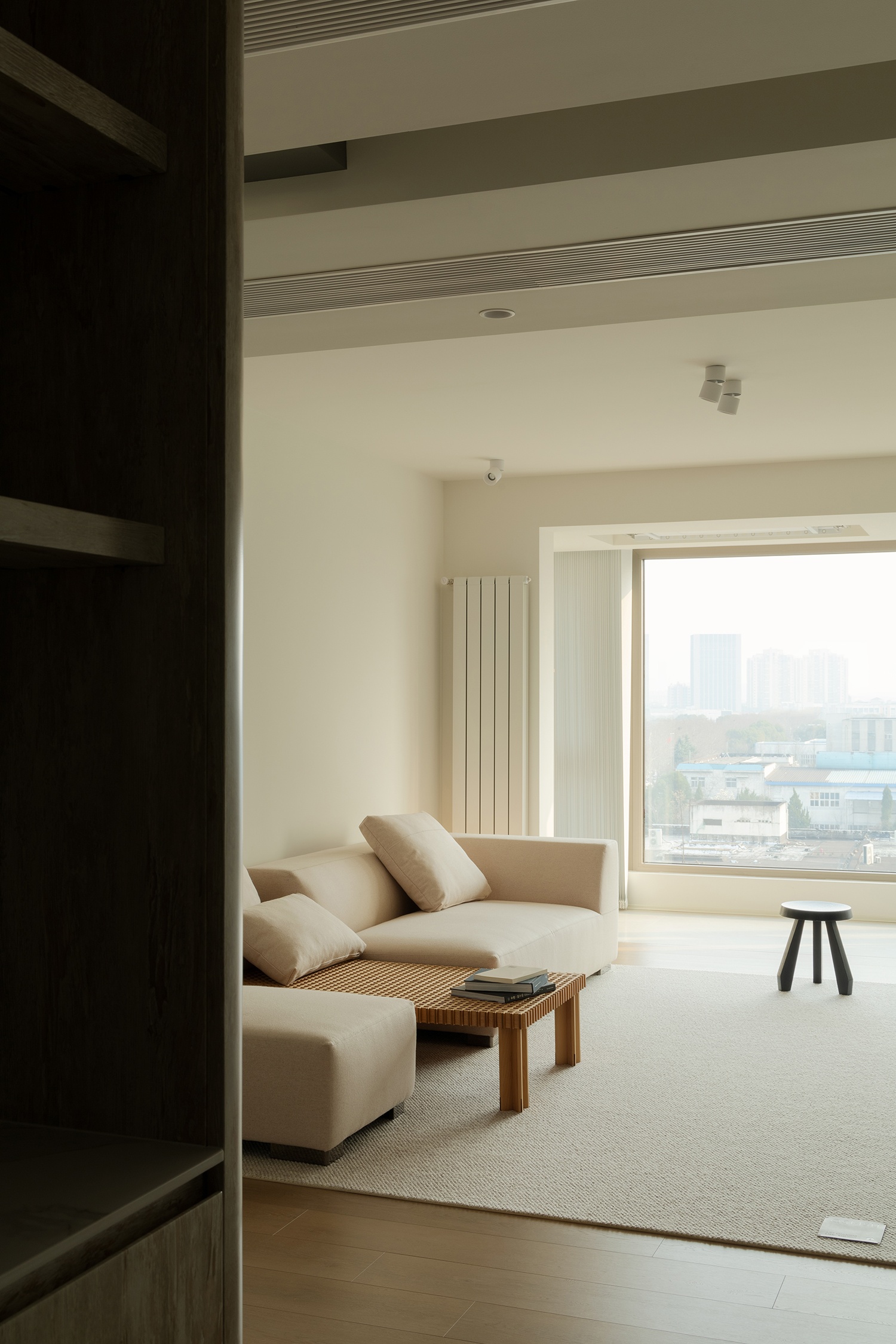 客厅采取了一种集约化的策略,将收纳空间、电视背景墙以及次卧室的入口整合在一起。不仅优化了空间使用,提升了功能效率,而且还赋予了整个区域一种流畅而统一的视觉感受,使每一寸空间都发挥出其最大的价值。