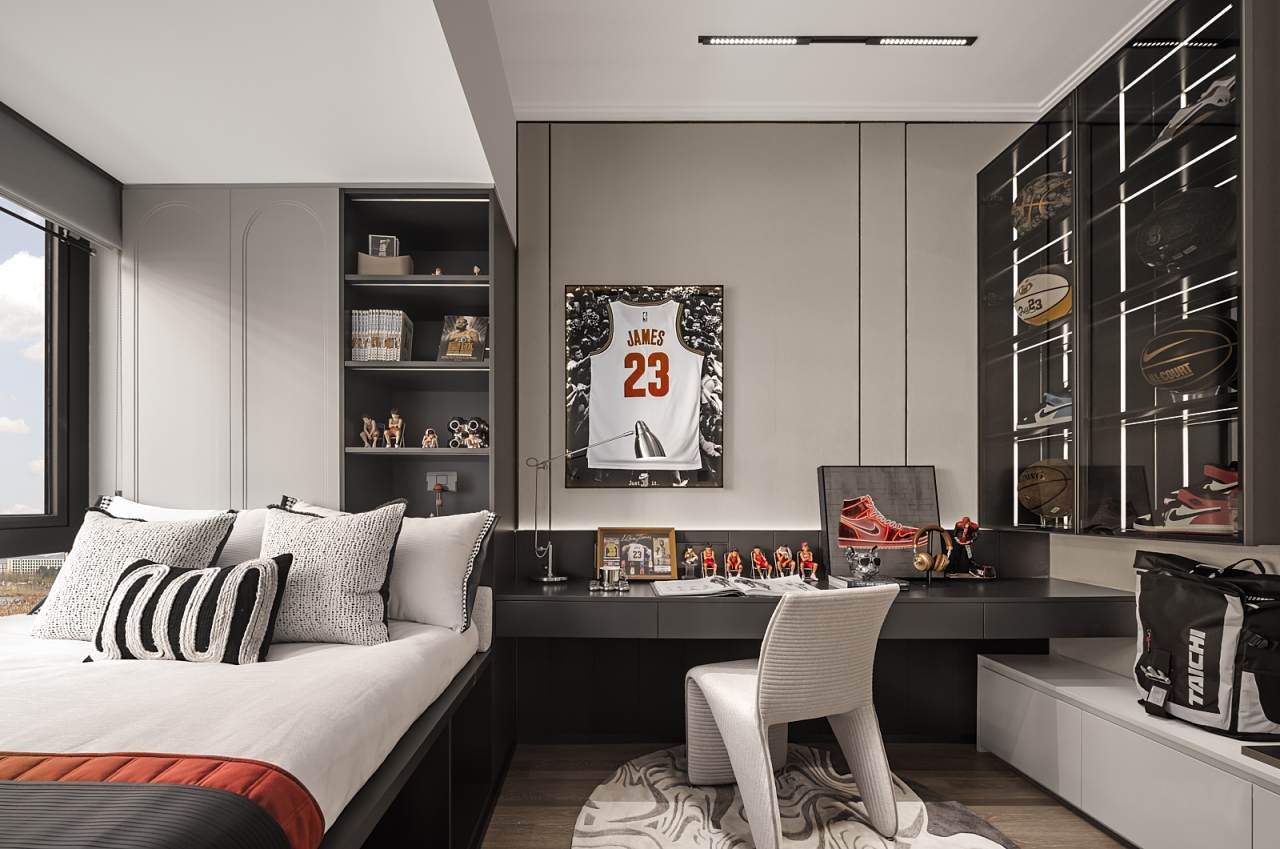 除了足够的储物空间,设计师为孩子留有一处展示区域,给平淡生活制定新鲜秩序,赋予孩子更多想象力。