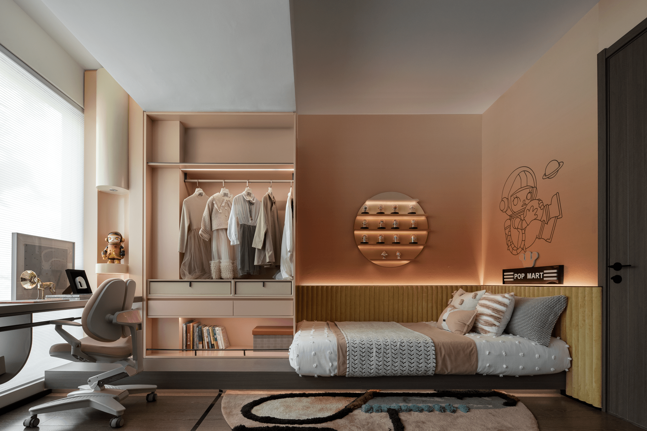 没有小孩时,这里可以设计成双人电竞房,根据人生成长阶段的不同需求,它可以灵活呈现成不同形态,跟孩子一样,家也在不断生长...