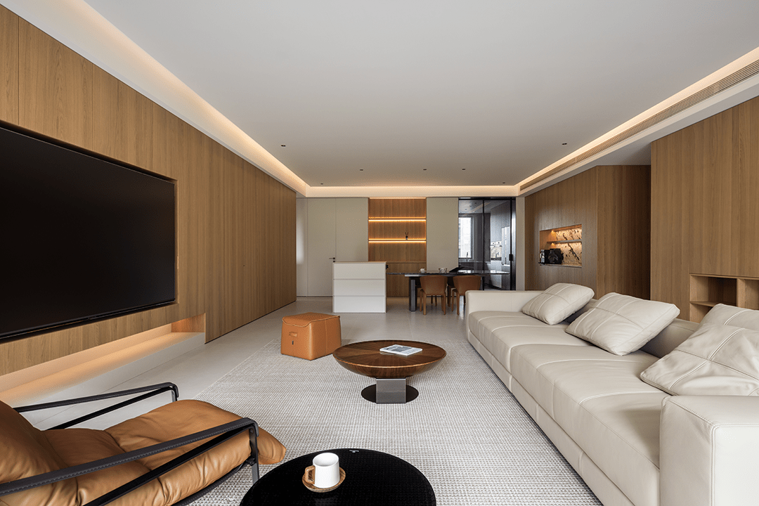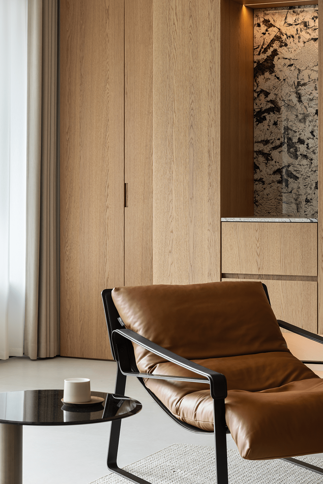 灯光、材质色泽相容 空间像是覆盖了一层柔和滤镜 将空间氛围保持在温润的饱和度之下