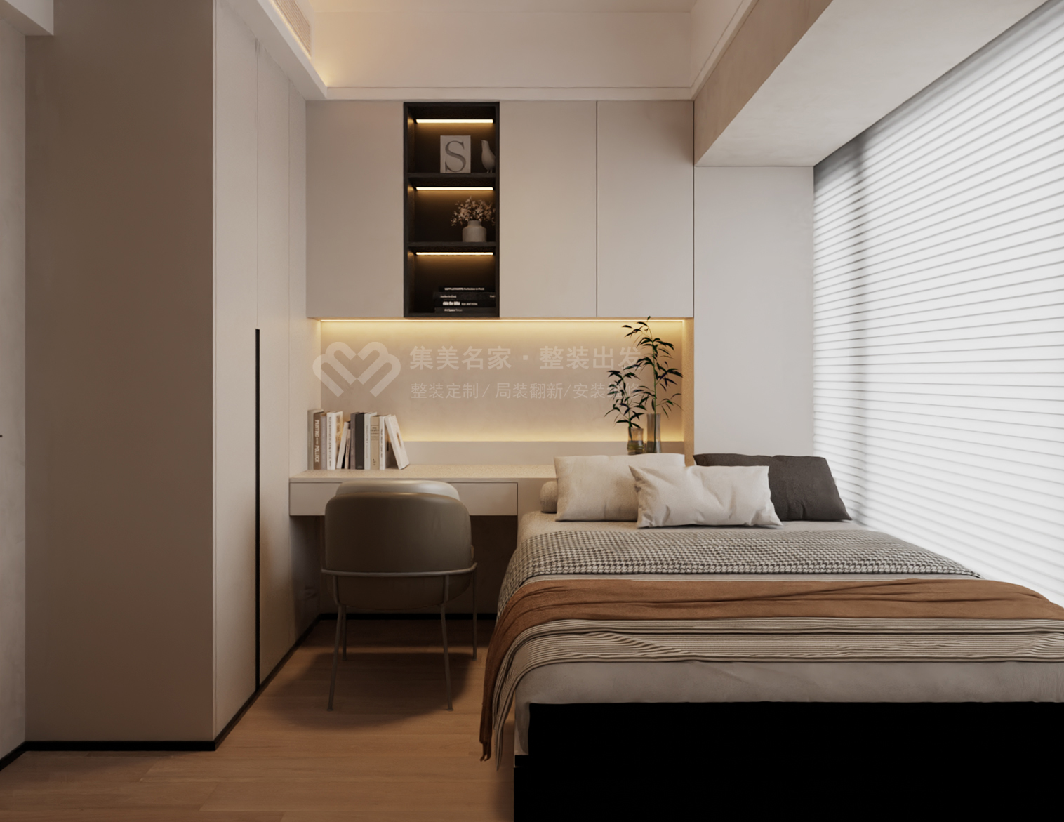 次卧设计充分考虑了多功能性,除了睡眠功能外,还可以作为工作区使用,此外,榻榻米下方也被利用起来,作为储物区域,方便存放书籍、玩具等物品,进一步提升了次卧的实用性和便捷性。